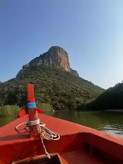 The boat costs 500 THB per trip and accommodates up to 6 people. The ride lasts about 45 minutes.