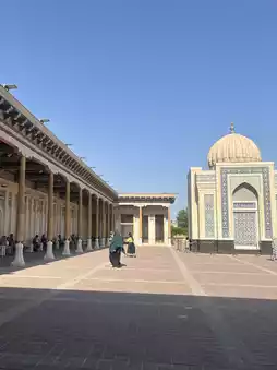 Hazrat Khizr Mosque is a historical monument in Samarkand, built in the mid-19th century ⏳👑 and related to the legendary Muslim saint Khizr. The building was built on the site of an ancient mosque. The monument is located on a hill opposite the Shah-i-Zinda complex. In 2018, the mausoleum of Islam Karimov, the first president of the Uzbek Republic, was opened on the territory of the mosque, and many people came to visit.