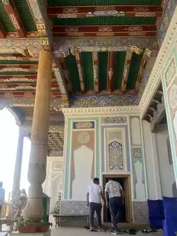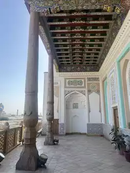 There is a charming veranda on the left side of the mosque arch. The veranda has five wooden columns and a carved ceiling, decorated with colorful patterns and delicate plaster carvings. The balcony leads to the Khanka, which is covered with a high dome with eight ribs and a lantern. The exterior of the dome is decorated with tiles‼ ️The gate and minaret are decorated with carved bricks, and the dome of the gate has arched windows. It is very suitable to stay for a while to appreciate its beauty📷🇺🇿🌟