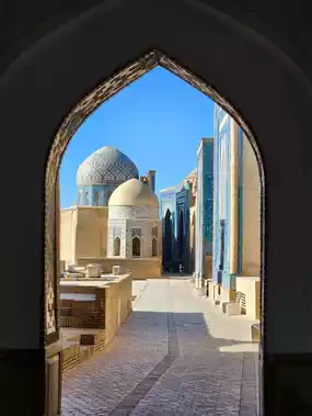 I recommend the Shah-i-Zinda Mausoleums in Samarkand, Uzbekistan, known as the "Blue City."