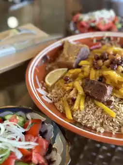 This insanely large plov is enough for two people, and is served on a plate that matches the number of people in your group🫶🏼
