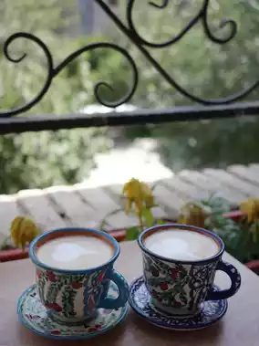 First of all, the location is amazing, and they make 4 types of coffee after you order, and let you choose your favorite mug from several types with Uzbek patterns🥰🤍