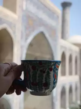 Enter the Ulugh Bek Madrasah on the left side of the Registan Square and you'll find this coffee shop on the second floor☕️