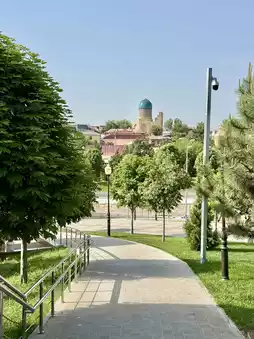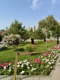 If you’re wandering around Samarkand in spring, don’t miss Turan Park — it’s right next to the Hazrat Khizr Mosque and offers a peaceful escape with amazing views! The park was full of blooming flowers when I visited, and from one spot you can even see the impressive Bibi-Khanym Mosque in the distance. It’s such a dreamy place to take a break, especially with all the greenery and floral colors popping everywhere.