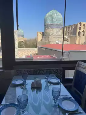 A highly recommended hotel in Samarkand, Uzbekistan, Central Asia. From the breakfast restaurant, you can enjoy a stunning view of the Bibi-Khanym Mosque! The interior of the hotel is beautifully decorated, making it a perfect spot for photos✨