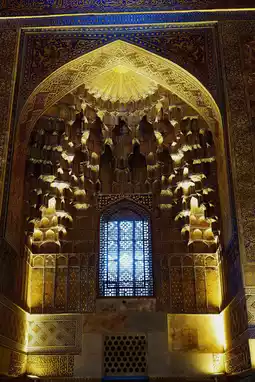 👉Gur-e-Amir Mausoleum (Samarkand): Timur's tomb with dazzling golden interiors.