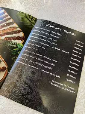 The recommended dish here is Uzbekistan's specialty, Shashlik🥩.
