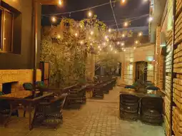 In Samarkand, there is a street with different pubs, cafes, and restaurants. You can just walk along it and go into different establishments. We decided to stop by and have dinner in one of them. This place is called Green Bear Bar.