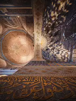 The royal tomb of the Timurid Empire, with a dome inlaid with gold leaf that truly dazzles! Remember to look up at the stunning honeycomb ceiling🐝