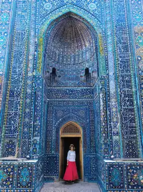 Shah-i-Zinda means "The Living King." Legend has it that Kusam, the cousin of the Prophet Muhammad, was martyred here, making it an Islamic holy site. It houses the tombs of royal family members, religious leaders, and nobles from the 7th to the 15th centuries. The 36 steps ascending from the entrance symbolize the journey from the earthly world to heaven. The Avenue of the Dead inside the necropolis is even more breathtaking; the blue floral tiles on the walls shine brilliantly under the sunlight, and the exquisite decorations and domes inside the tombs reflect the high status of their occupants. It’s hard to imagine these buildings have withstood a thousand years and witnessed countless dynastic changes.