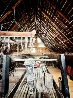 Step inside a traditional Batak house at Huta Siallagan, and it’s like entering a living museum where time stands still. The steeply pitched roof, low doorway, and hand-carved wooden beams reveal the Batak people’s deep craftsmanship and symbolism. Inside, dim light filters through the slats, illuminating heirlooms, woven textiles, and ancestral artifacts that tell stories of generations past. The air feels sacred — a blend of history, tradition, and quiet reverence that connects visitors to the spirit of this ancient culture.