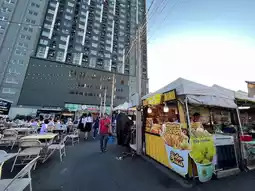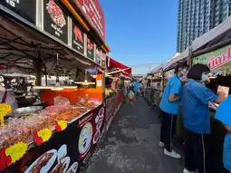 🌟 Review of Black Market Located in Tambon Tai Ban Mai, Samut Prakan Province, it is another walking market with a lot of delicious food and snacks in the area of the BTS Phraeksa station. There are many and varied shops in this market, such as shops selling new and second-hand fashion clothes, nail shops, beauty salons, food shops, drinking water shops, grilling shops, fried food shops, dessert shops, everything is here. Anyone who lives in this area can come for a relaxing stroll in the evening because this market is perfect for sitting and eating or shopping for various items in a relaxing way. The food from each shop is delicious and will definitely please you. There are tables and chairs here for you to sit and eat and relax. Sometimes at night, there will be live music to relax and relieve stress.