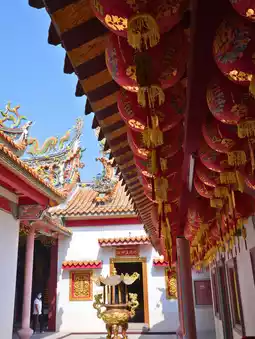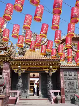 Sian Lo Tai Tian Gong Shrine or Five Kings Shrine or Thammakatan Foundation Shrine or Thammakatan Temple can be called by many names. It is also a large shrine with beautiful Chinese architecture and sculptures and the largest pair of carved lions in Thailand. It is close to the Chinese New Year festival, so it is suitable to find a beautiful cheongsam to wear and take pictures together. It fits the atmosphere perfectly.