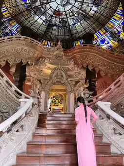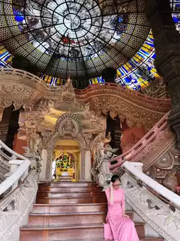 Impressive with the gigantic three-headed elephant statue, the deeper you go, the more overwhelmed you become by the colorful glass architecture pieced together.
