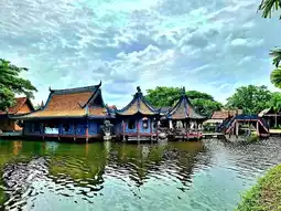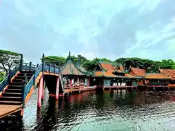 The Ancient City is a world-class open-air museum covering over 800 rai. Construction began in 1963 and took over 10 years to complete its main structure. The Ancient City Floating Market, part of the Ancient City, was born from Khun Lek's explorations of various locales throughout Thailand, gaining a deep understanding of the local landscape and culture. Impressed by the remaining riverside cities, Khun Lek used this as the concept for the construction of the Ancient City Floating City and Floating Market in Bang Pu, Samut Prakan Province.