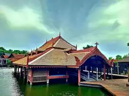 Initially, construction began by collecting surviving wooden buildings from various areas and arranging them to resemble the traces of riverside towns in the Central region. Ancient murals and photographs from the reigns of King Rama IV and King Rama V were also studied to ensure the architectural landscape was complete and consistent with the atmosphere of the thriving floating city. The construction of the Ancient City Floating Market laid the foundation for the city's development. An open-air museum is the most effective and precise way to reflect the lifestyle and culture of the people, closely aligning with historical and cultural truths. This aims to preserve the cultural heritage of Siam through valuable architecture from all regions of Thailand.