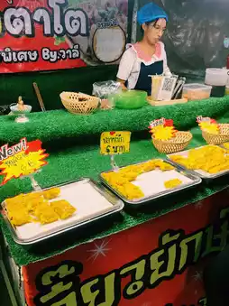 Here there are numerous stalls selling clothes, shoes, beauty products, some phone products, toys and even Nail places. Best of all it sells FOOD—and it is CHEAP! Way cheaper than other markets like a Watermelon Smoothie for 20 Baht😱mango Sticky Rice also for 20 Baht🤭