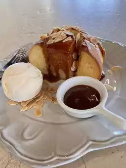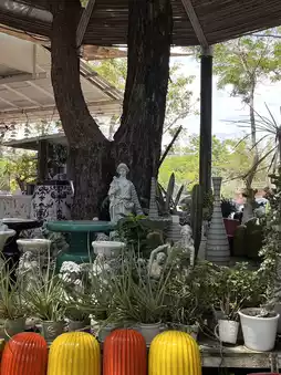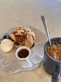 It's a place with an amazing atmosphere, delicious food, and the banana crepe is the best. The banana crepe is exclusively available here. If you visit during sunset, it's incredibly beautiful as flocks of birds surround the area. There's also an activity zone for painting plaster and ceramic figures. For those who love drawing and painting, you can purchase items to paint right there.
