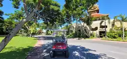 I exchanged my pre-purchased admission ticket, dropped off my driver's license, and rented a golf cart! It felt a bit awkward at first because I only had a driver's license, but it was fun to drive around.