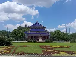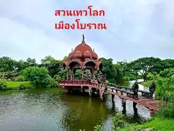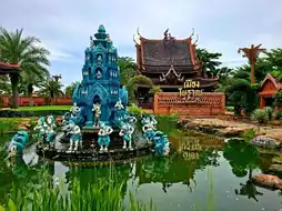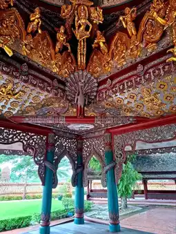 To the right of the ticket checkpoint at the entrance to Ancient City Samut Prakan, there's a beautiful garden and a beautifully architectural pavilion, the Brahmavihara Pavilion.
