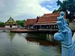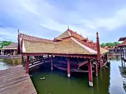 In the Ancient City of Samut Prakan, there are two markets: the floating market and the land market. In the central region, people live along the river, and their way of life is closely connected to the water. People of different faiths coexist. You'll see temples, shrines, churches, and mosques lining both banks. There's also a lively museum and theater.