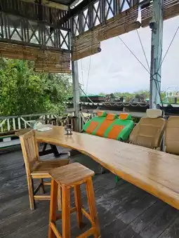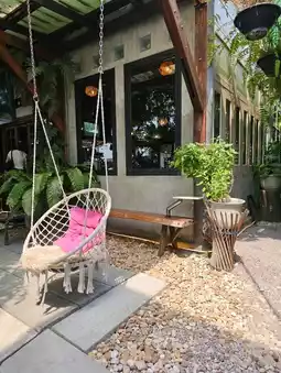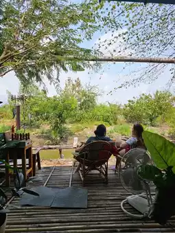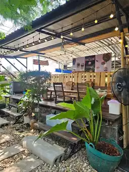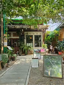 But the secret cafe location for matcha lovers is another shop that if you go to Samut Sakhon, you must stop by and check in. We made a map route that we couldn't believe that there would be a matcha shop hidden here. We drove into the alley quite deep.