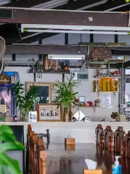 Today, we're featuring a delicious restaurant with a great atmosphere. It's practically a hidden gem, as the entrance is truly hidden. We stumbled upon this restaurant by chance near Mahachai Market. It's called Baan Rim Nam Mahachai Restaurant. The atmosphere is homey and right on the waterfront. Most importantly, the food is fresh and delicious, and the prices are reasonable.