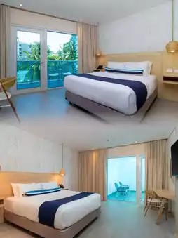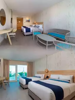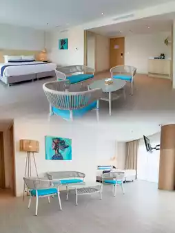 From the moment I stepped into the Aquamare Hotel, I was captivated by its unique charm. The lobby is spacious and bright, decorated in a style that blends modern minimalism with tropical flair. Brightly colored murals, intricate wood carvings, and lush greenery create a welcoming yet elegant atmosphere. The friendly and professional front desk staff quickly checked me in, providing a detailed overview of the hotel's facilities and services, which heightened my anticipation for my stay.