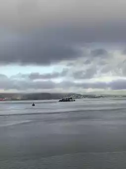· Alcatraz panorama: The complete outline of the mysterious island in San Francisco Bay right in front