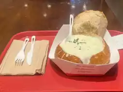 Pier 39 offers a variety of restaurants and shops. Don't miss Boudin Bakery Cafe's signature sourdough chowder! 🥫 This rich clam chowder, served in a traditional, naturally fermented sourdough bread, gives you a unique taste of San Francisco.