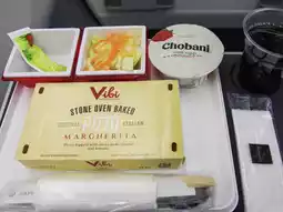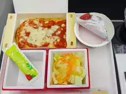 The second meal, served about an hour and a half before arriving in Japan, was an American-style Margherita pizza🍕.