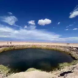 Laguna Cejar is located within the Salar de Atacama, 20 kilometers from San Pedro de Atacama. It is recognized by the strong Calipso color of the water and is surrounded by salts of various shapes. Its waters, being saline, allow bodies to float and remain without sinking, because the load of salt is greater than the weight of the person.