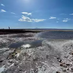 The landscape is one of the most attractive in the Atacama desert, where the blue of the sky, the white of the salt, the light blue of the water and the pink of the flamingos that come to feed are mixed. It is best to always walk with shoes as the salts have sharp points that can cut your feet.