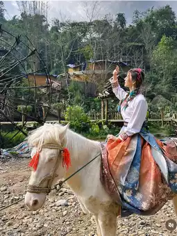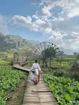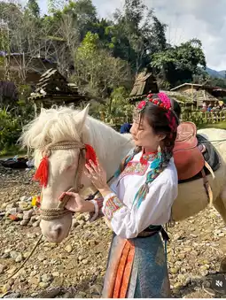 Wanting to be a tribe, I rented this outfit at Cat Cat Village 🥰 Renting a outfit with hair styling is 250,000 VND. There are many outfits. Each style has a different price. Horseback riding is 50,000 VND, but my little sister seemed to be sleeping the whole way. I was so excited 555. Note: The seller here speaks very good Thai. The last shop is right next to the village ticket counter. Cat Cat Village has a lot of places to visit, including waterfalls, beautiful villages, and beautiful views like a painting. I have to say that you have to come here at least once.