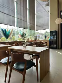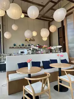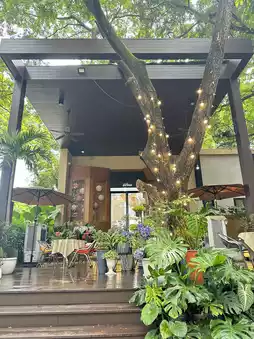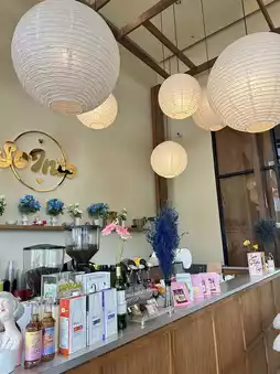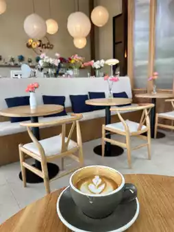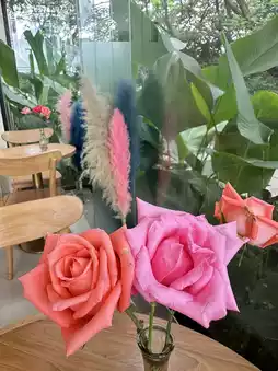 Driving past, the shop caught my eye from the outside. It's decorated soooooo cute. There's also a parking lot for those who love flowers because there are a lot of real flowers here. It's beautiful from the entrance. The shop is even more beautiful. There are many photo spots both inside and outside. The first time I came, I really liked it. Especially the coffee, it's very good quality and not too expensive. The shop also has food, but we didn't order it. If anyone passes this way, I recommend it. It's beautiful and refreshing.