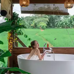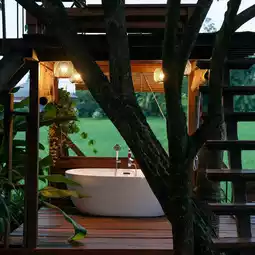 There is also an outdoor bathtub for soaking and enjoying the view✨