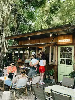 A shady shop surrounded by trees and bamboo, like escaping to relax in the forest, camp style, natural view of Maejo University area