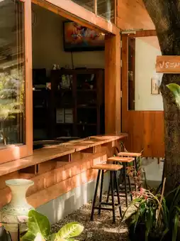 The atmosphere of the shop is shady and comfortable to sit in.