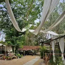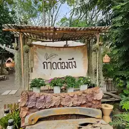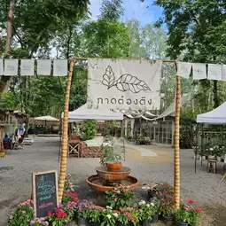 🔆Kad Tong Tung 🔆@Baan Rim Nam is a new market in the Ruam Chok area. The market is not too small or too big. The atmosphere is shady with big trees. It just opened not long ago. It is located in the Rim Nam Village area, on the main road of Chiang Mai - Phrao. Inside, there are many products for sale: home decorations, handmade products, ready-to-eat street food, famous suki restaurants, som tam restaurants, milk and butter desserts, Thai desserts, bakery, fresh vegetables, fresh fruits, fruit juices, teas and coffees. There are many to choose from. There is a cute cafe where you can sit and listen to music and enjoy the atmosphere. 🎶🎵