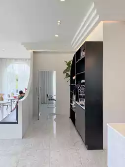 The shop is decorated in black and white and wood tones, giving a warm, minimalist feel. The shop has an air purifier and air conditioning that is cool and comfortable. There are many seating areas that can accommodate more than 20 people. Plus, the barista here plays a playlist of songs that are very impressive. I spent hours listening to them. 😂