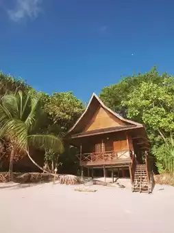 The resort offers 23 beach chalets and 9 water villas, each equipped with a private sea-view balcony, air conditioning, a bathtub, and 24-hour stable water and electricity supply.