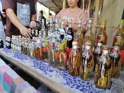 🛖Inside the village, there is not only the distillation of tea leaves, but also the weaving of sarongs in the style of the Lan Chang Hai people, which have beautiful and unusual patterns. The price is not expensive. You can buy it as a souvenir. 🍾