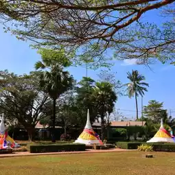 Three Pagodas Pass is located in Nong Lu Subdistrict, Sangkhla Buri District, Kanchanaburi Province. It is a long row of three white pagodas with an octagonal base and beautiful pointed tops. It acts as a border connecting Sangkhla Buri District, Kanchanaburi Province with Phraya Tongsu District in the southern part of Karen State in Myanmar.