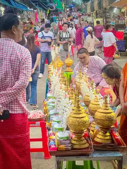 Popular activities when visiting the Mon village include giving alms, dressing like Mon, trying local Mon food, buying handmade souvenirs, and taking photos with children on the bridge.