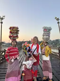 When visiting Sangkhla, how can you miss visiting the Mon Bridge? A classic wooden bridge that stretches across both sides of the Mon village. A beautiful natural tourist destination with both atmosphere and culture. A popular activity is to wear a local costume to offer alms in the morning, take beautiful photos, and then walk around looking for food and shop for local products with the villagers.