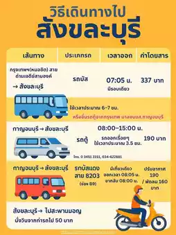 Planning a trip to Sangkhlaburi this year but don't have your own car? Don't worry! Traveling is easier than you think, with vans, buses, and trains available.