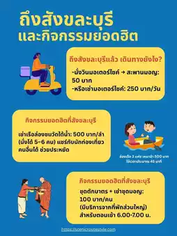 Alms offering set + rental set: 100 baht/person (available at most accommodations)