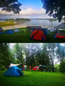 The tent site is a grassy area overlooking the dam. Wake up early and enjoy a leisurely stroll, taking in the beautiful scenery and taking in the scenery.