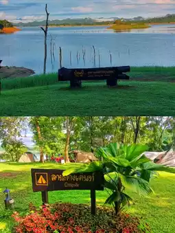 We recommend a recommended tent site with the best view: Pom Pee Tent Site within Khao Laem National Park. At the far end, you'll find the Vajiralongkorn Dam reservoir, overlooking the reservoir, with numerous islands, large and small, stretching as far as the eye can see.