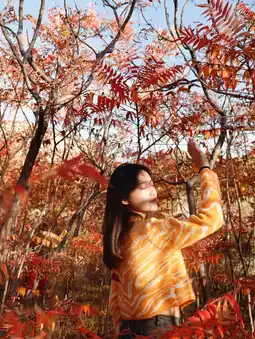 🍁 Red all over the mountains: The trees here are torch trees, which feel different from yellow trees. The trees here are tall and dense, and you will be shocked by the red color all over the mountains in the forest